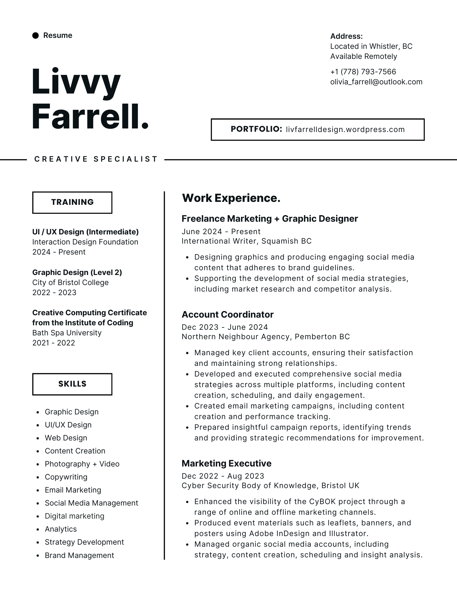 Hello, my name is Livvy, and I’m a creative professional with expertise in marketing, communications and graphic design.